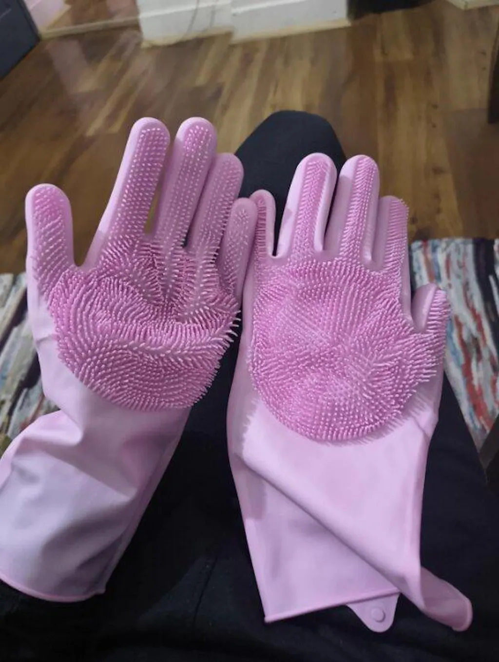 Yeh gloves bahut convenient hai pehle bar bar scrubber badalna parta tha ab ek hi chiz se sab kaam ho jata hai material soft hai aur cleaning power strong hai